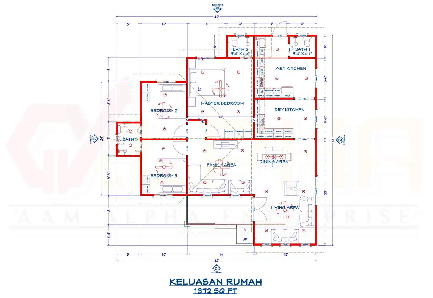Reka bentuk rumah ini juga merangkumi ruang tamu yang luas untuk keselesaan keluarga dan dapur basah yang praktikal untuk keperluan harian. Walaupun bersaiz sederhana, rumah ini direka untuk memberikan keselesaan maksimum dengan susun atur yang efisien. Projek ini membuktikan bahawa rumah bersaiz sederhana tetap mampu memberikan keselesaan dan fungsi yang sempurna.